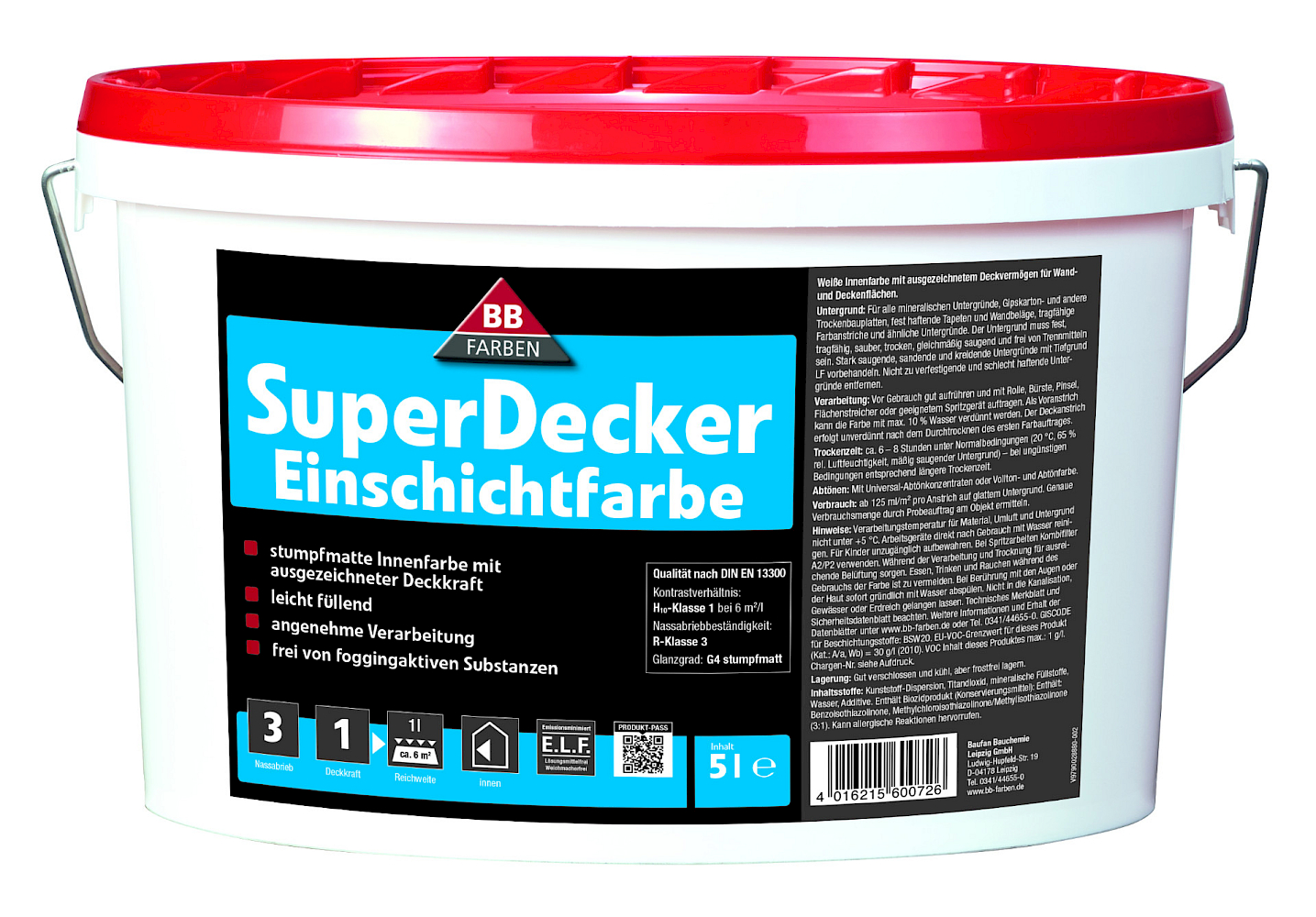 • Kontrastverhältnis: Klasse 1 bei einer Ergiebigkeit von 6 m²/l